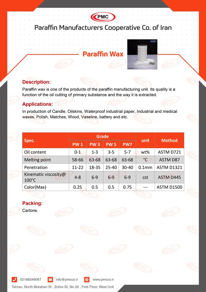 پارافین وکس یکی ازمحصولات واحدهای تولید کننده پارافین بوده و کیفیت آن تابعی از برش نفتی ماده اولیه و نحوه استحصال می باشد.