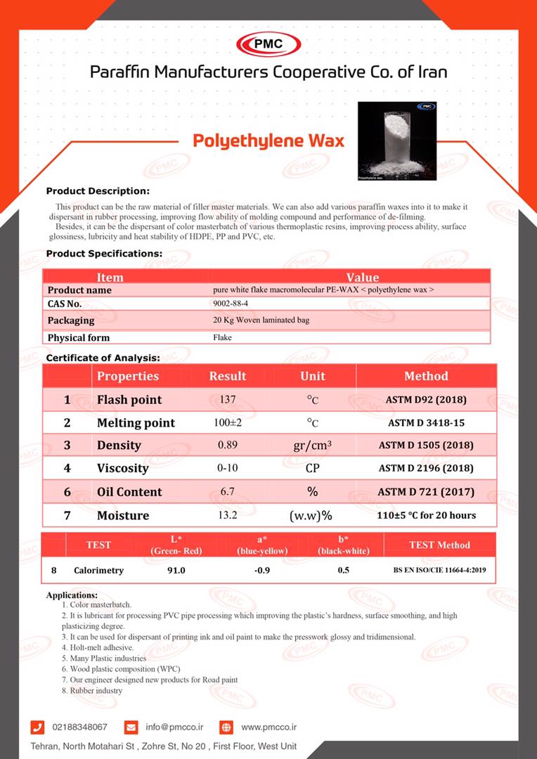 • موارد کاربرد: در صنایع گوناگون از جمله صنایع پارافین، جوهر پرینتر، چسب، کابل، پی وی سی و براق کننده ها استفاده میشود.