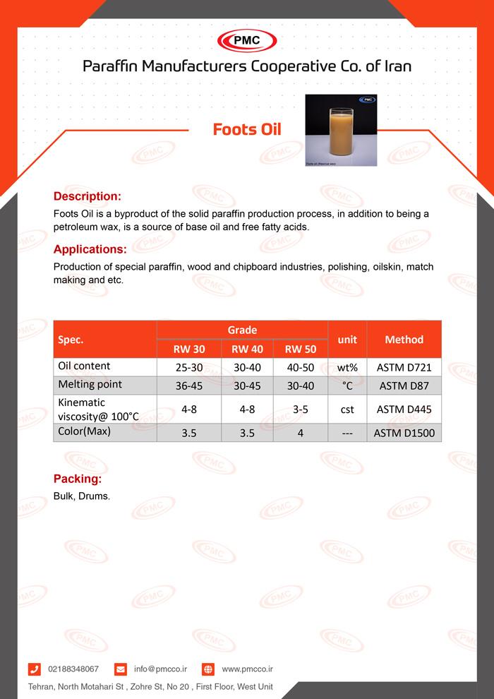 فوتس اویل یا رزیجو وکس محصول جانبی فرآیند تولید پارافین جامد است که علاوه بر دارا بودن وکسهای نفتی منبع غنی از روغن پایه و اسیدهای چرب آزاد می باشد.