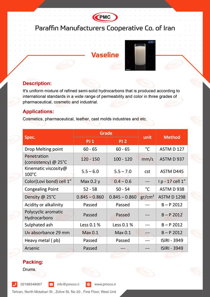 مخلوطی یکنواخت ازانواع هیدروکربن های نیمه جامد تصفیه شده می باشد و مطابق با استانداردهای بین المللی در سه طبقه بندی مشتمل برگرید داروئی، بهداشتی و صنعتی تولید می شود.